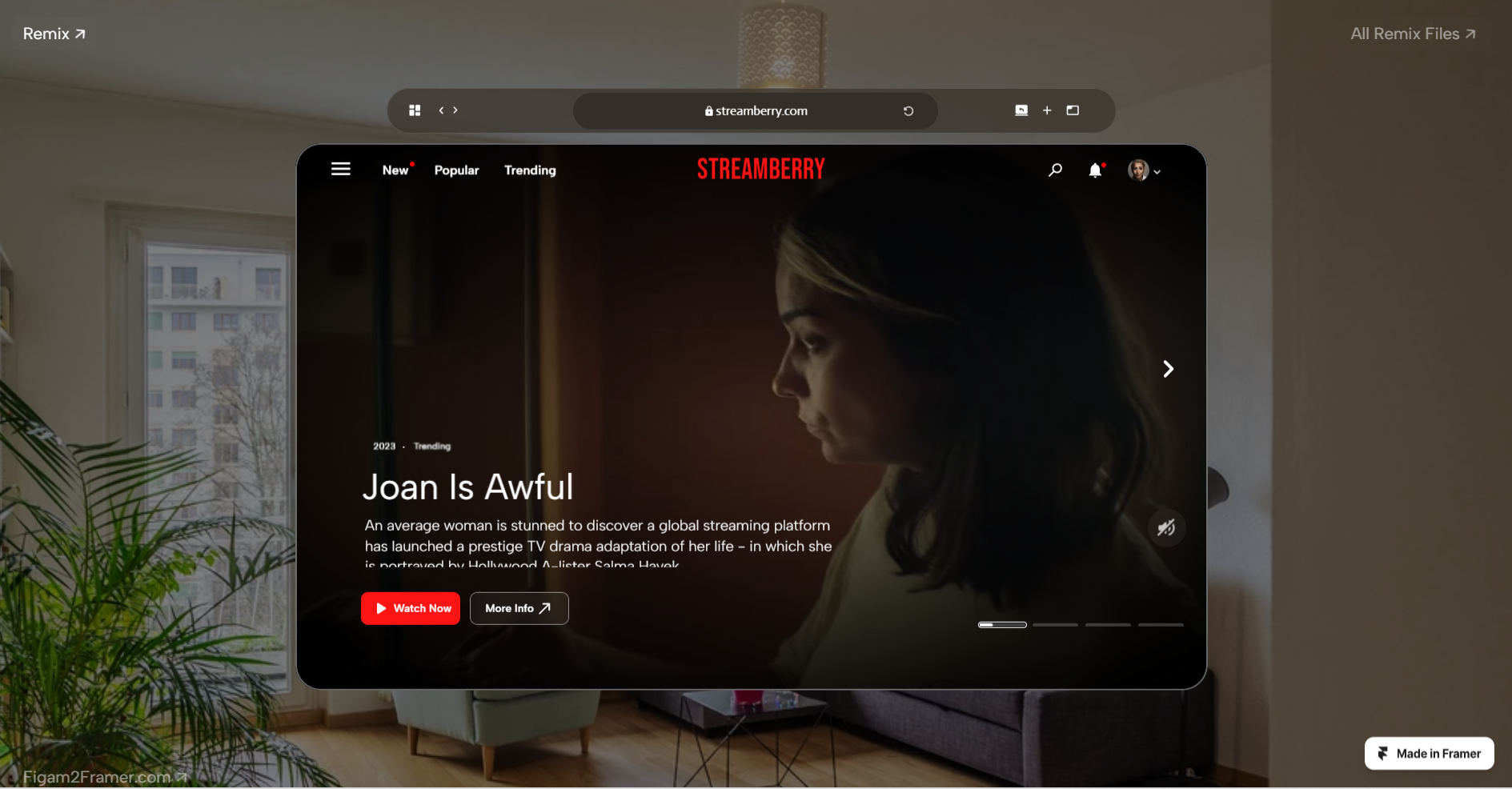 Streamberry Browser Tab on the Vision Pro version with Framer